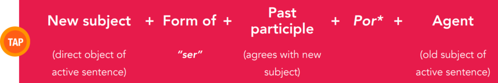 - “Ser” can be conjugated in any tense; use the same tense as you would use with the active voice.
